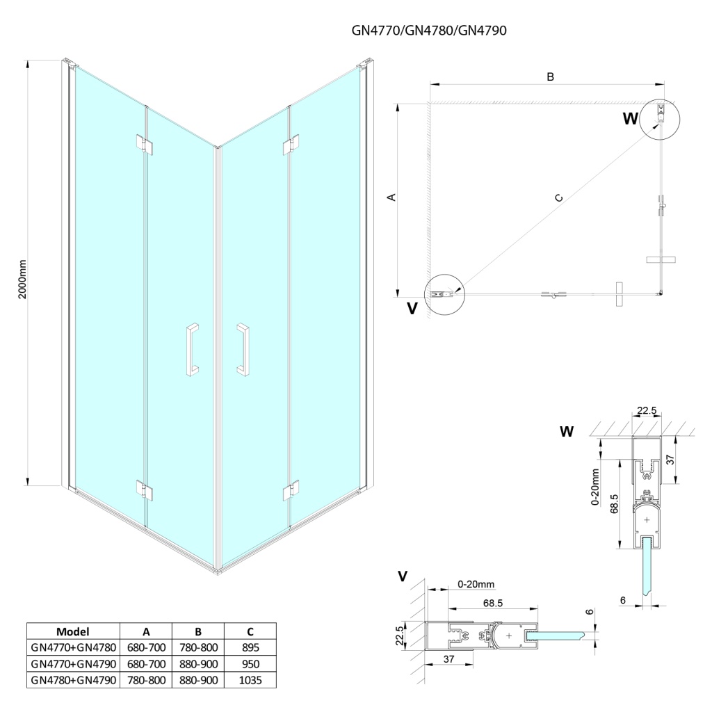 LORO obdélníkový sprchový kout 900x700mm, rohový vstup Gelco