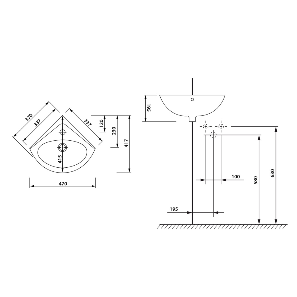 RIBERA keramické umývátko rohové 43x28,5 cm, otvor pro baterii vlevo, bílá