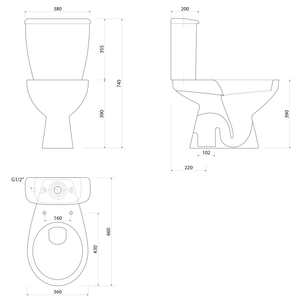 MANUEL WC kombi, dvojtlačítko 3/6l, spodní odpad, bílá Aqualine