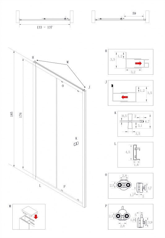 S šířkou 135 cm a nastavitelným montážním otvorem (133 - 137 cm) se hodí do většiny sprchových koutů.