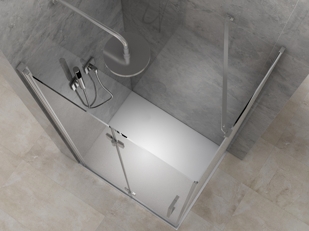 Není potřeba sprchová vanička – lze instalovat přímo na dlažbu s odtokovým žlabem nebo vpustí.