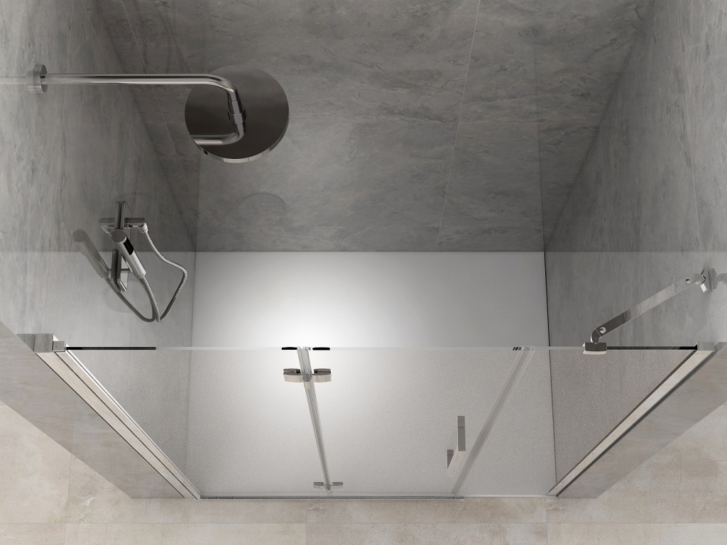 Pant křídla, který je vložený ve stěnovém profilu, se dá otáčet v obou směrech (dovnitř i ven). Dveře můžete tudíž složit jak dovnitř, tak ven ze sprchového koutu. Jednotlivá křídla jsou mezi sebou spojena pantem, kte