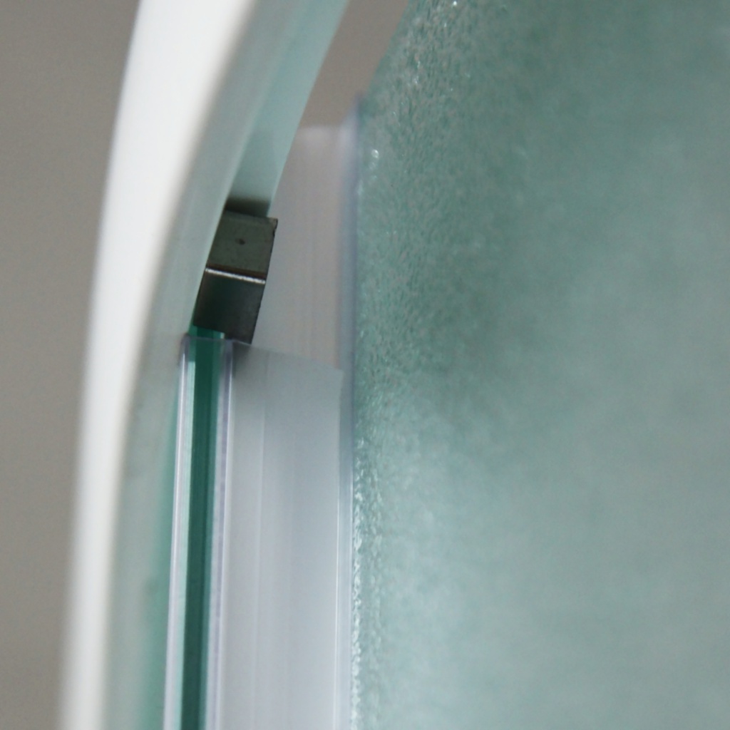 • Přední zástěnu jsme zvolili z Bezpečnostního skla Grape o síle 4 mm. To zajistí nejen pocit bezpečí při sprchování, ale také splní požadavky na uchování tolik potřebné intimity. Mezi posuvnými křídly dveří je silikonové magnetické těsnění, které sprchovou kabinu spolehlivě utěsní.