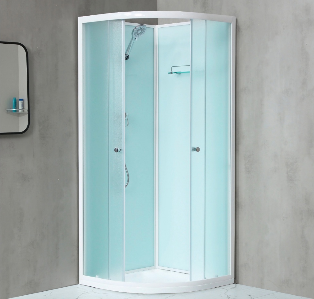 Světlý čtvrtkruhový sprchový box NOTRE bez středového panelu.