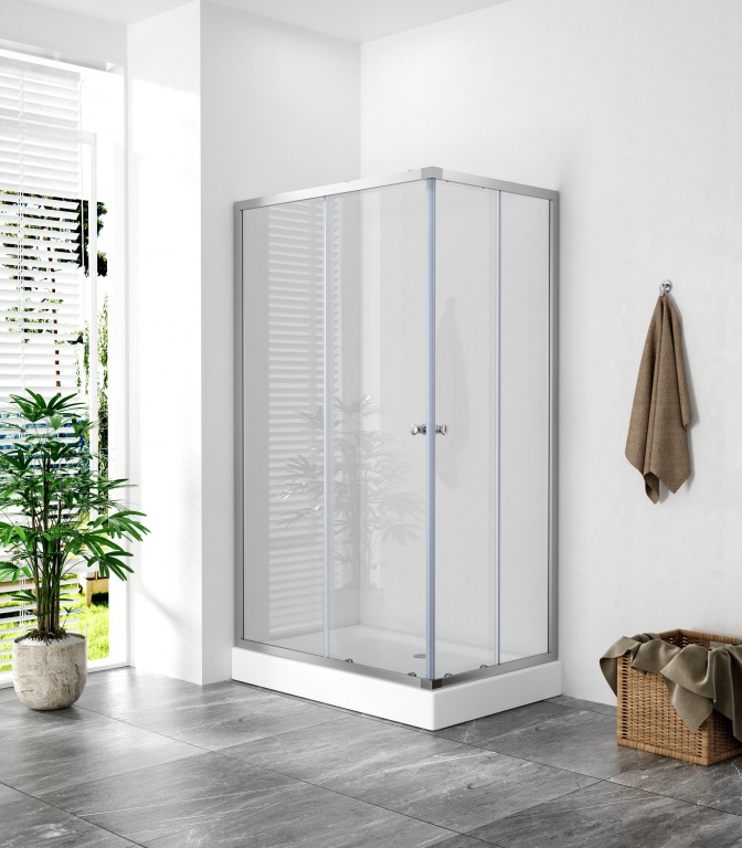 Na obou stranách zástěny je zdvojené silikonové těsnění mezi pevným a posuvným sklem. Ve stejném designu je zpracováno i magnetické těsnění mezi posuvnými skly. Magnetické dovírací těsnění celý kout spolehlivě uzavře.