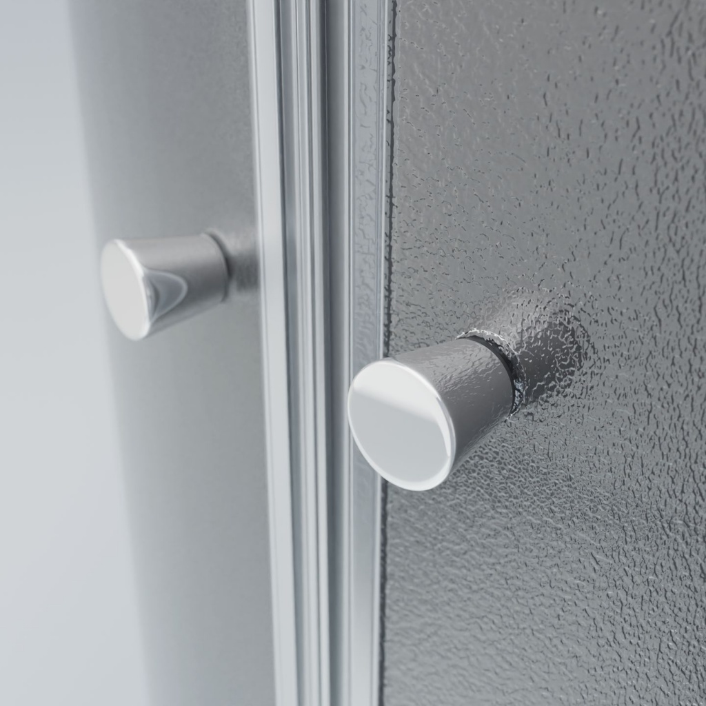 Na obou stranách zástěny je zdvojené silikonové těsnění mezi pevným a posuvným sklem. Ve stejném designu je zpracováno i magnetické těsnění mezi posuvnými skly. Magnetické dovírací těsnění celý kout spolehlivě uzavře.