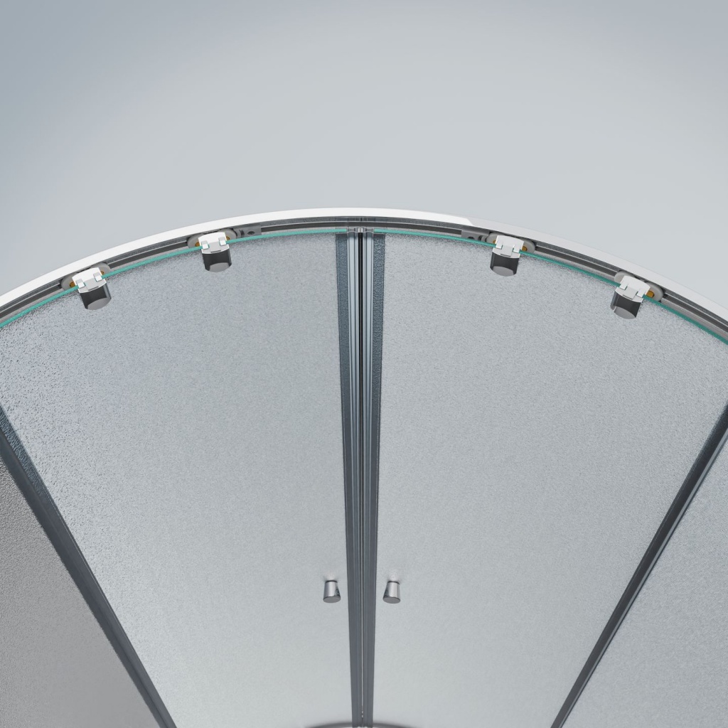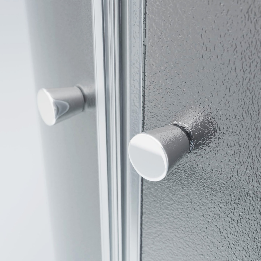 Na obou stranách zástěny je zdvojené silikonové těsnění mezi pevným a posuvným sklem. Ve stejném designu je zpracováno i magnetické těsnění mezi posuvnými skly. Magnetické dovírací těsnění celý kout spolehlivě uzavře.