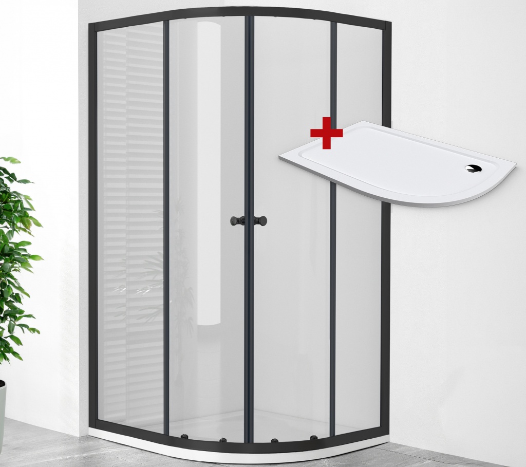 Sprchová asymetrická zástěna POINT Black v kombinaci s mramorovou sprchovou vaničkou ROCKY.