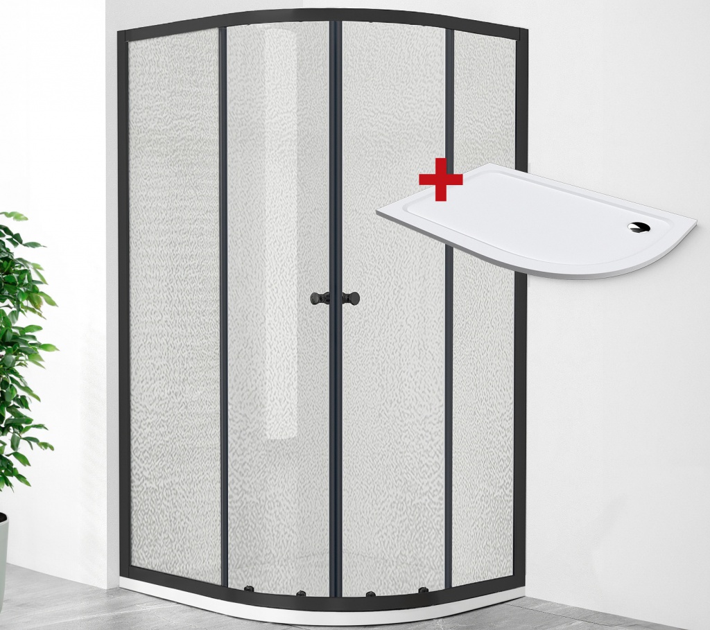 Sprchová asymetrická zástěna POINT Black v kombinaci s mramorovou sprchovou vaničkou ROCKY.