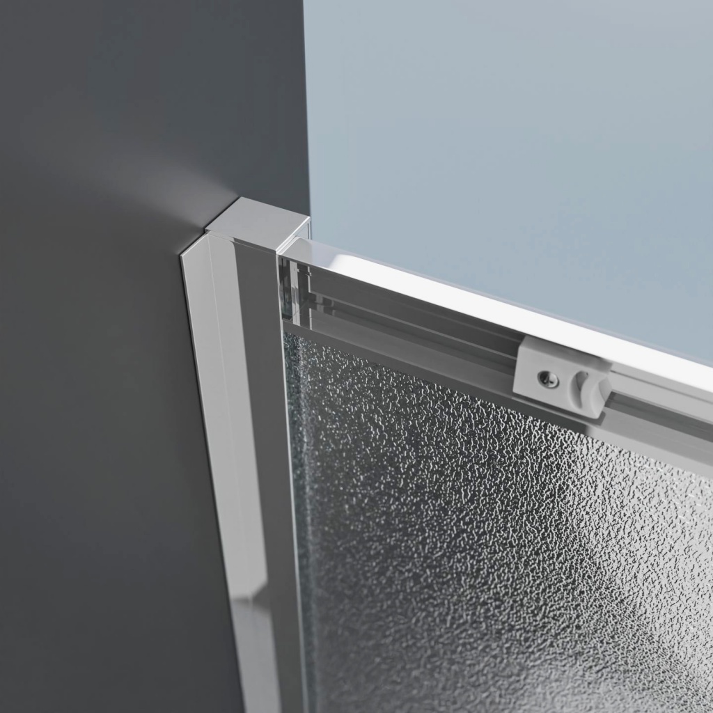 Na obou stranách zástěny je zdvojené silikonové těsnění mezi pevným a posuvným sklem. Ve stejném designu je zpracováno i magnetické těsnění mezi posuvnými skly. Magnetické dovírací těsnění celý kout spolehlivě uzavře.