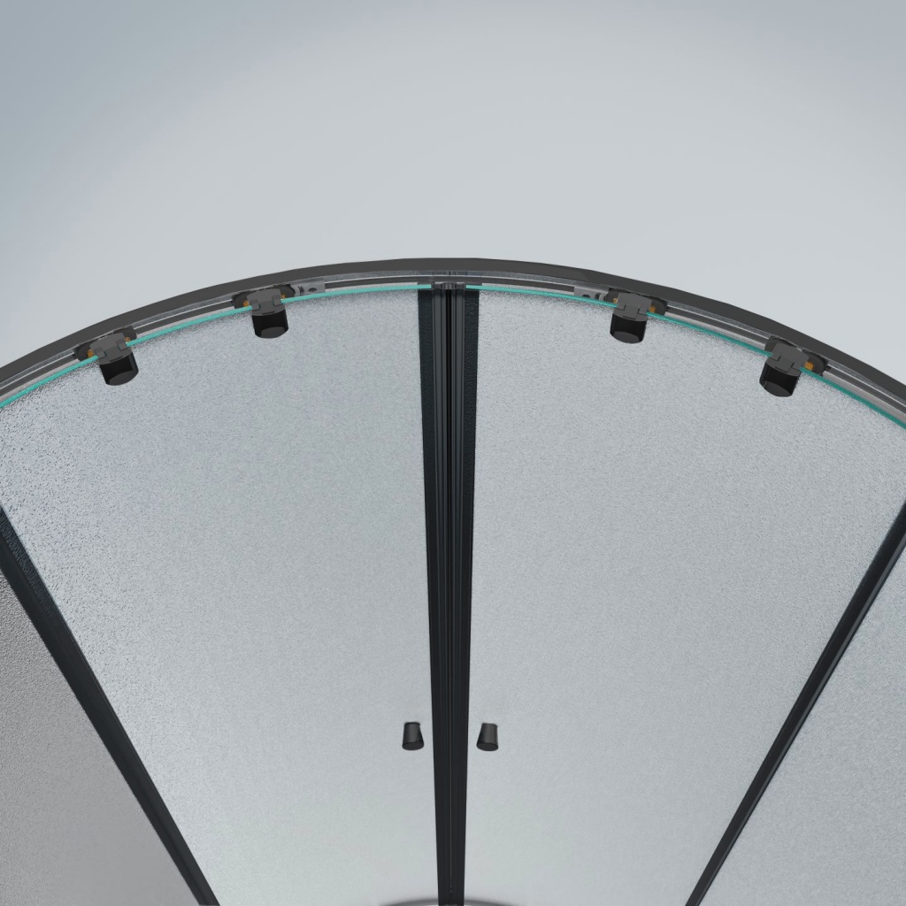 POINT BLACK 80x80 Grape Čtvrtkruhová sprchová zástěna Flexibilita uspořádání: Díky rohovému vstupu lze lépe přizpůsobit uspořádání koupelny. Sprchový kout může být umístěn v blízkosti stěny nebo naopak více v rohu, což dává více možností při plánování koupelnového prostoru.