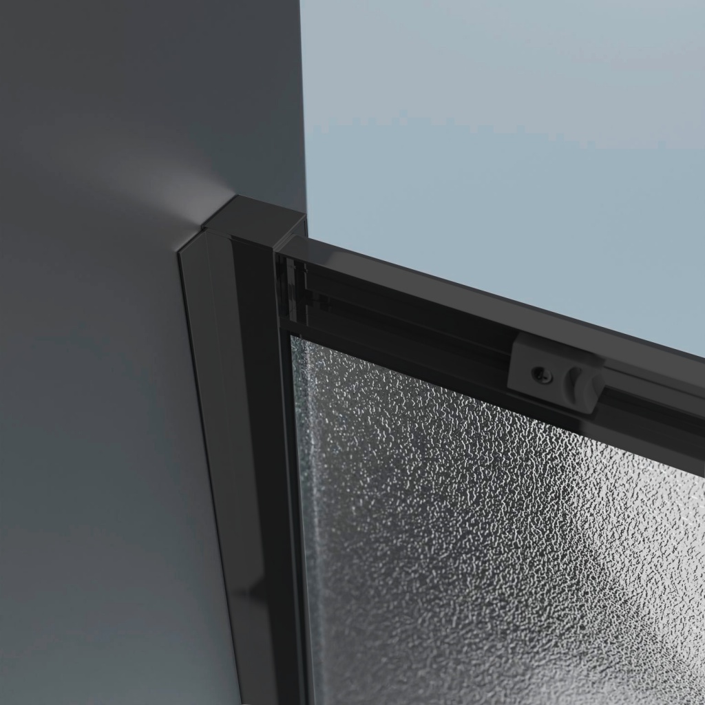 Na obou stranách zástěny je zdvojené silikonové těsnění mezi pevným a posuvným sklem. Ve stejném designu je zpracováno i magnetické těsnění mezi posuvnými skly. Magnetické dovírací těsnění celý kout spolehlivě uzavře.