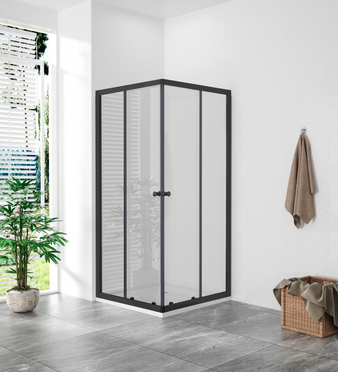 POINT Q BLACK ROCKY 90x90 Clear Čtvercový sprchový kout s mramorovou vaničkou Úspora místa: Díky rohovému umístění vstupu lze využít roh sprchového prostoru, který jinak často zůstává nevyužitý. To je zvláště užitečné v menších koupelnách, kde je důležité optimalizovat každý centimetr volného prostoru.