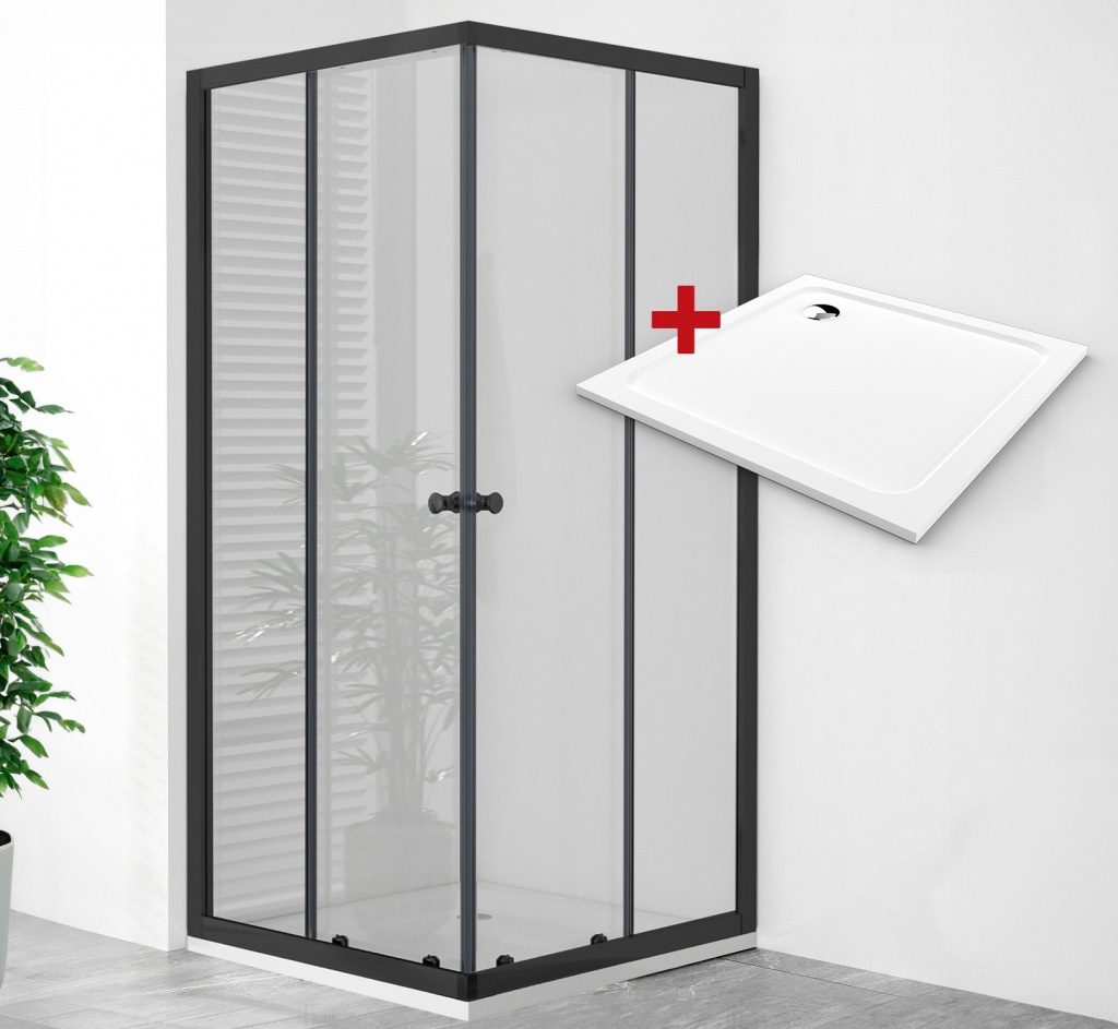 Posuvné otevírání dveříPOINT Q BLACK ROCKY 90x90 Clear Čtvercový sprchový kout s mramorovou vaničkou