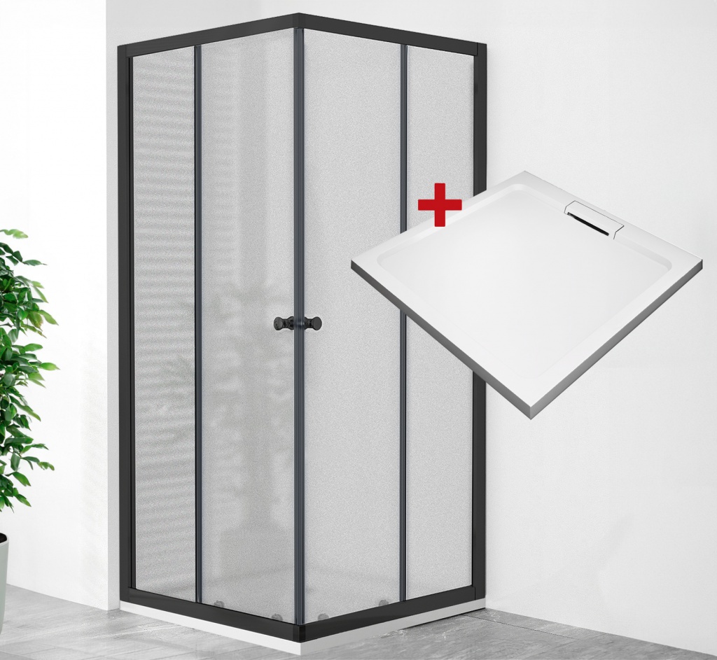 POINT Q BLACK HARD 90x90 Grape Čtvercový sprchový kout s mramorovou vaničkou WellMall