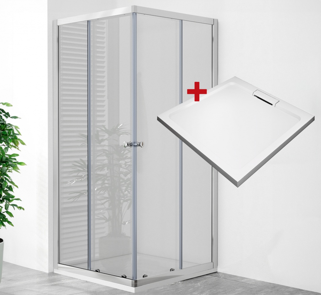POINT Q HARD 80 Clear Čtvercový sprchový kout s mramorovou vaničkou WellMall