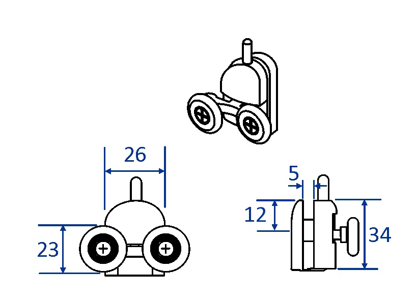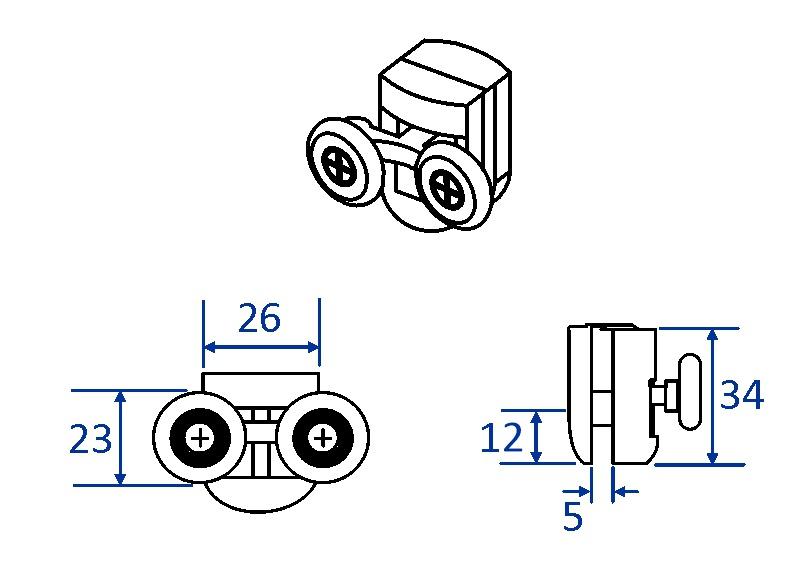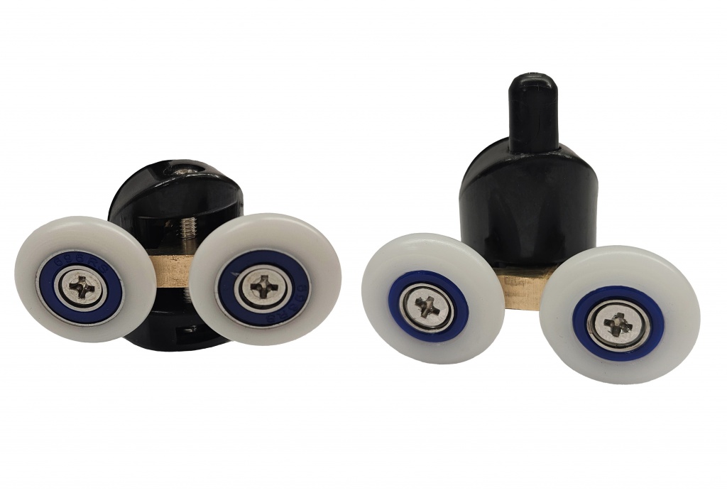 Pojezdová ložisková kolečka Notre/Mild. Mosazné nosné ramínko. V balení jsou 4 horní pojezdy, 4 spodní pojezdy, 8 gumových zarážek. Barva: černá... Více informací...