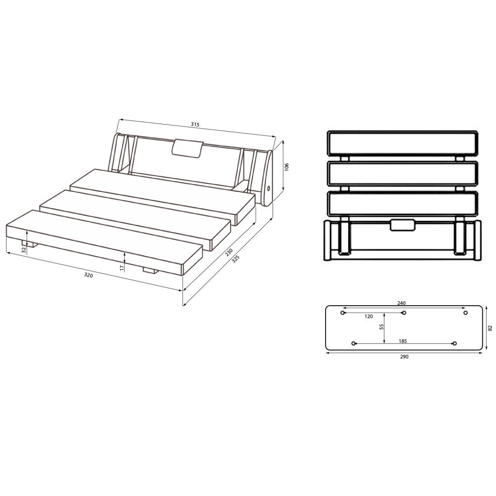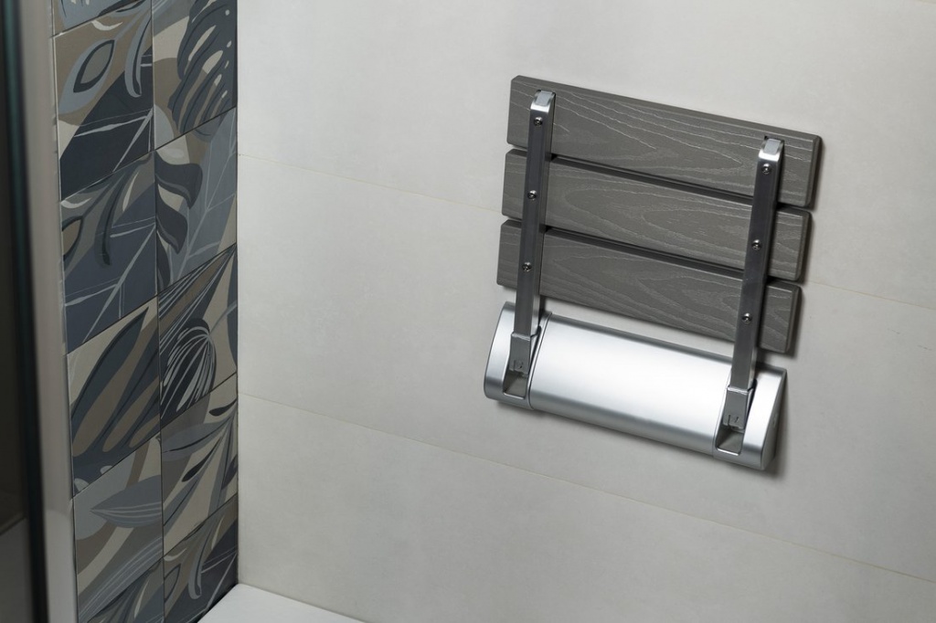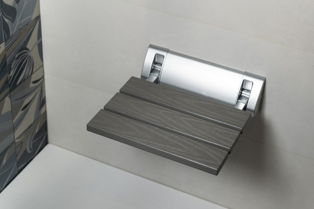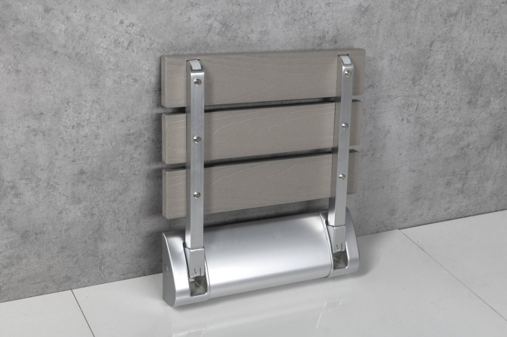 RAVO sklopné sedátko do sprchového koutu 32x32,5cm, WPC, šedá Aqualine