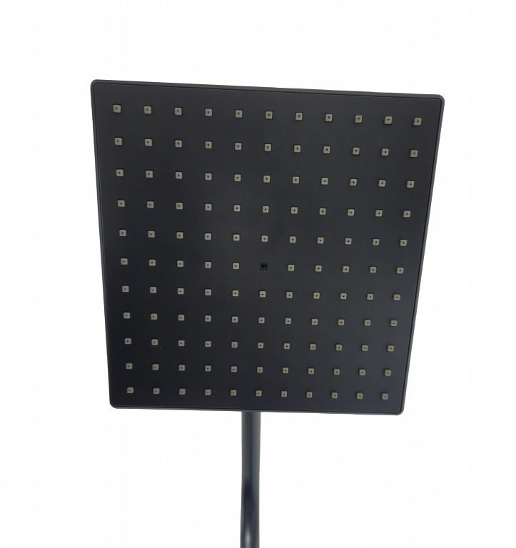 Horní sprcha o rozměru 17,5 x 17,5 x 1,9 cm přináší pohodlné sprchování hlavy a zad. Díky gumovým nopkám je také snadnější čištění.