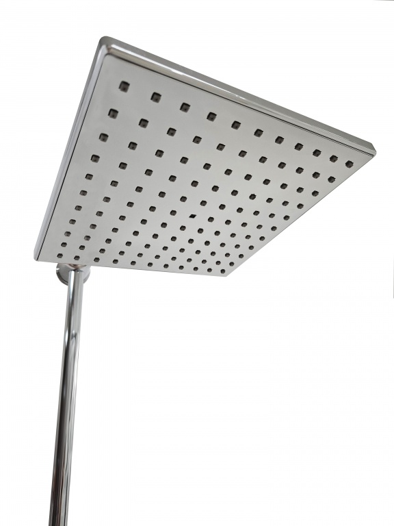 Horní sprcha o rozměru 17,5 x 17,5 x 1,9 cm přináší pohodlné sprchování hlavy a zad. Díky gumovým nopkám je také snadnější čištění.