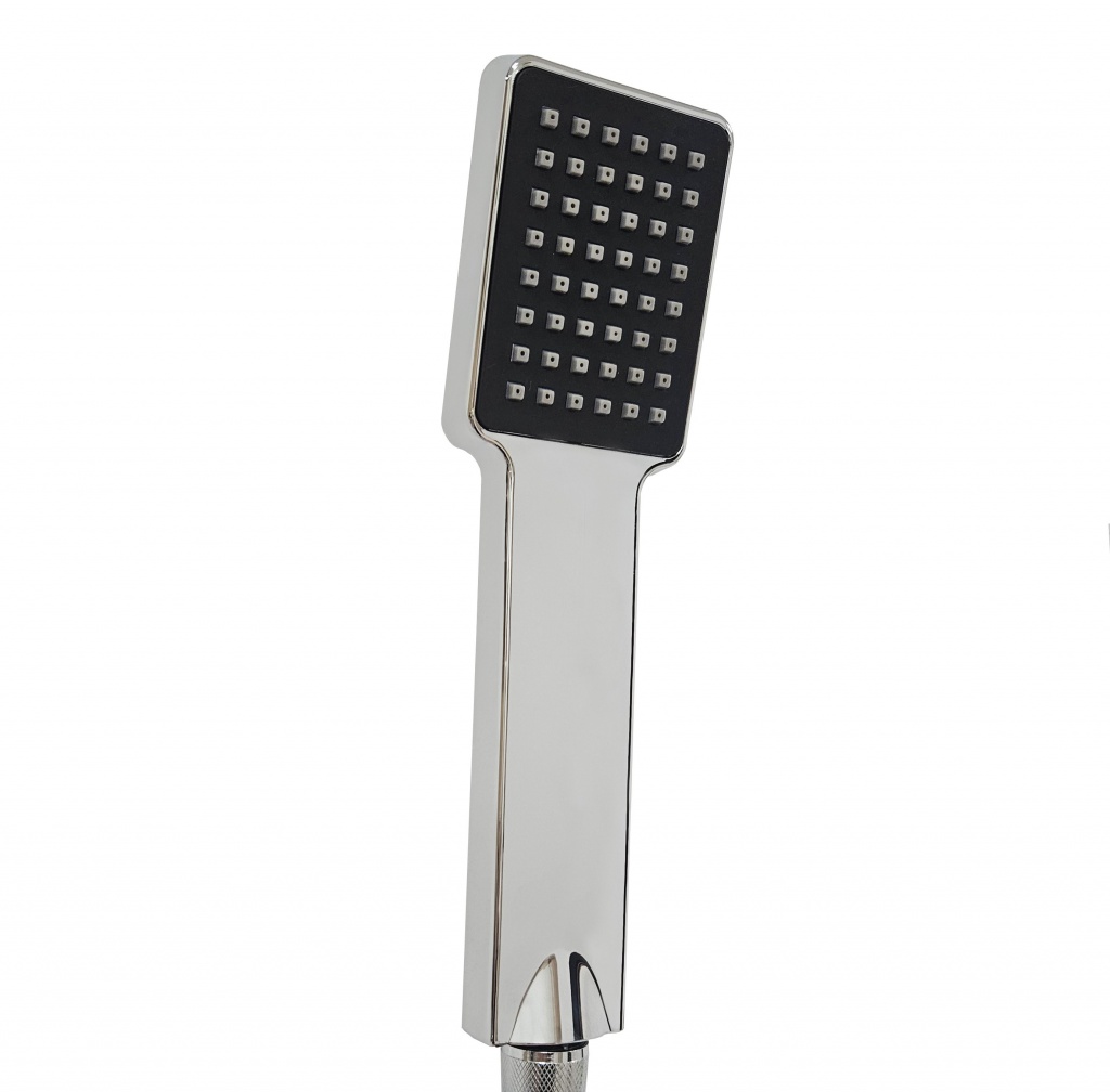 Hranatá sprchová hlavice je jednofunkční a je vybavena gumovými nopkami proti usazování vodního kamene a snadnější údržbu. Tím je také prodloužena její životnost.