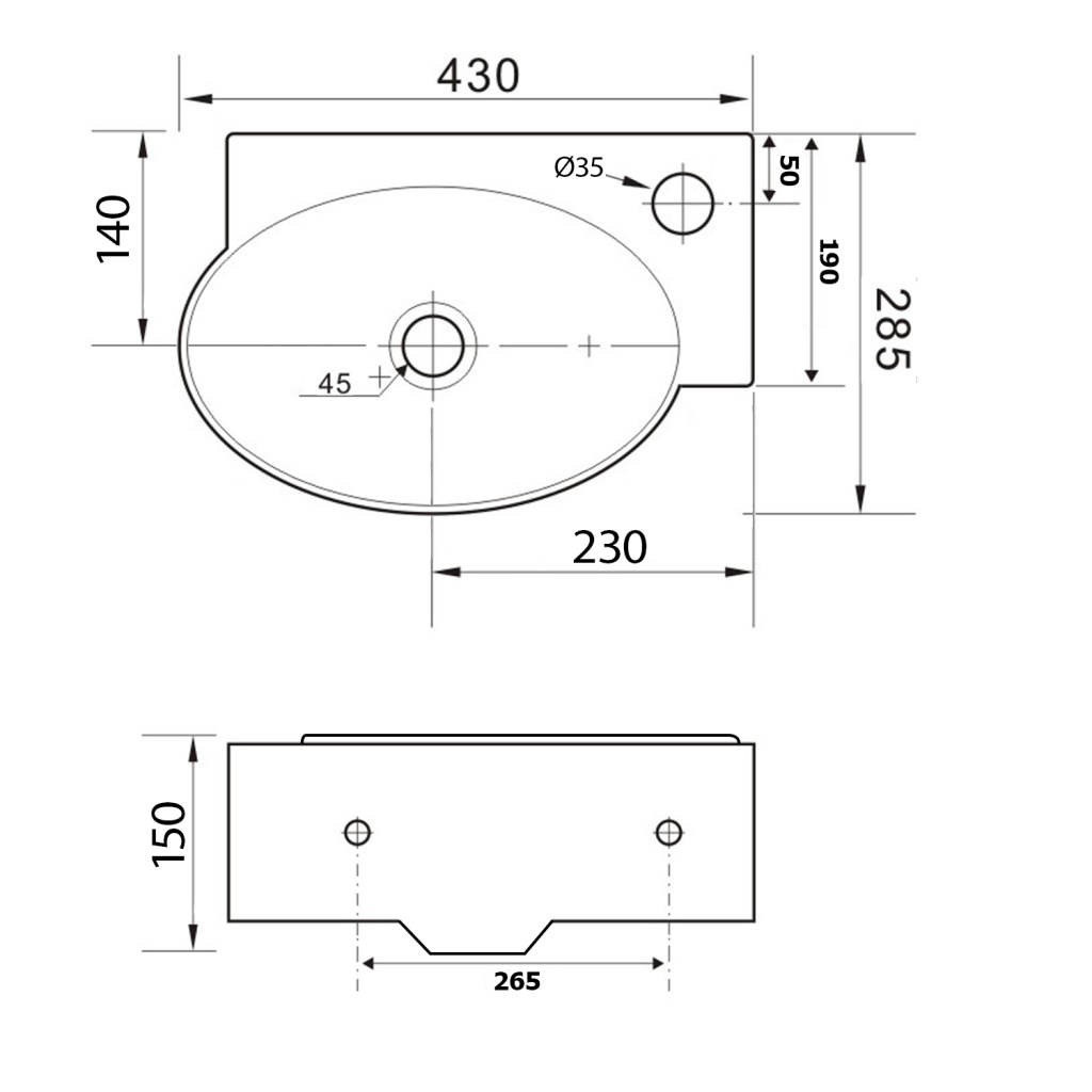 RIBERA keramické umývátko rohové 43x28,5 cm, otvor pro baterii vpravo, bílá Sapho