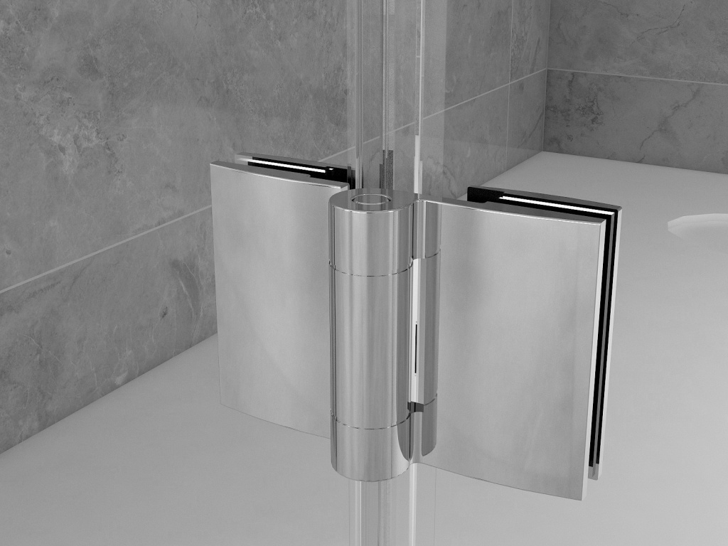 Ve stejném designu je zvolený i tvar spojovacího pantu pevné části a dveří.