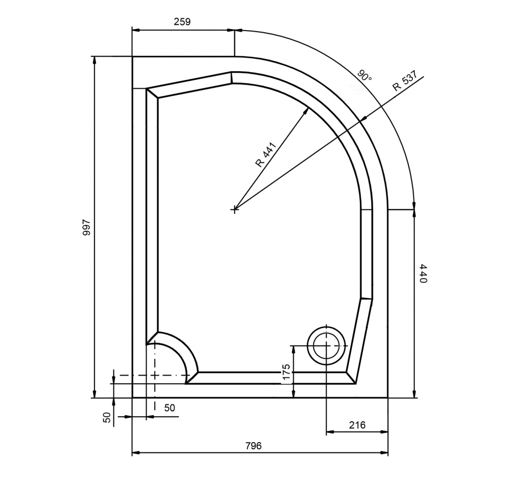 RIVA sprchová vanička z litého mramoru, čtvrtkruh 100x80cm, levá, bílá Gelco