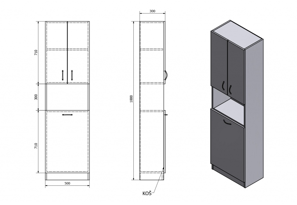 Vysoká koupelnová skříňka s výklopným košem na prádlo.• dvoukřídlá dvířka horní - uvnitř 1 police• jednokřídlé výklopné dvířko s košem na prádloRozměry:šířka:... Více informací...
