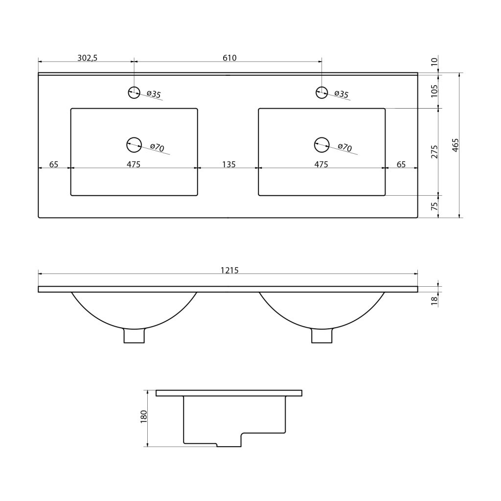 SLIM keramické dvojumyvadlo, nábytkové, 120x46,5cm, bílá