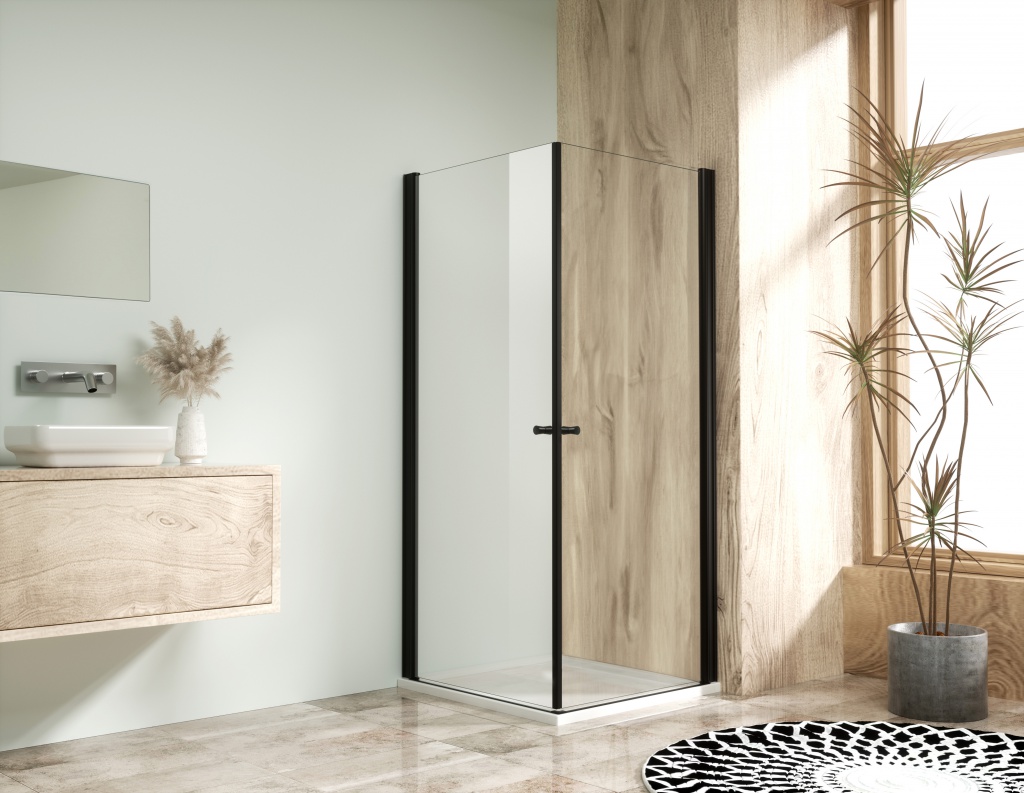 Sprchová zástěna 95x85, oboustranně otevírací, čirá, černá - ALFA DUE WellMall