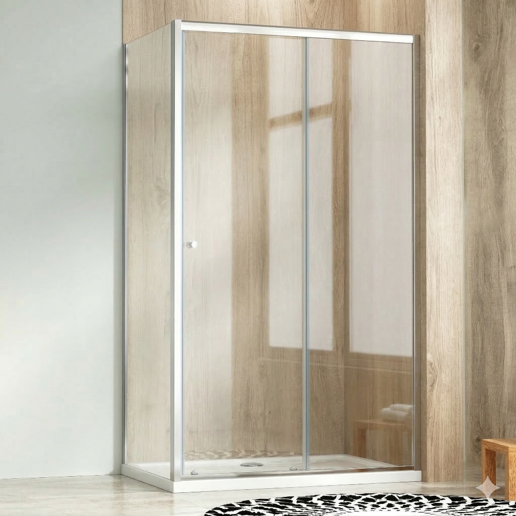 Nabízíme provedení posuvných dveří v kombinaci s pevnou stěnou. Vznikne tak dostatečně velký prostor pro vaši každodenní hygienu a dveře vám nebudou nikterak ubírat místo v koupelně.