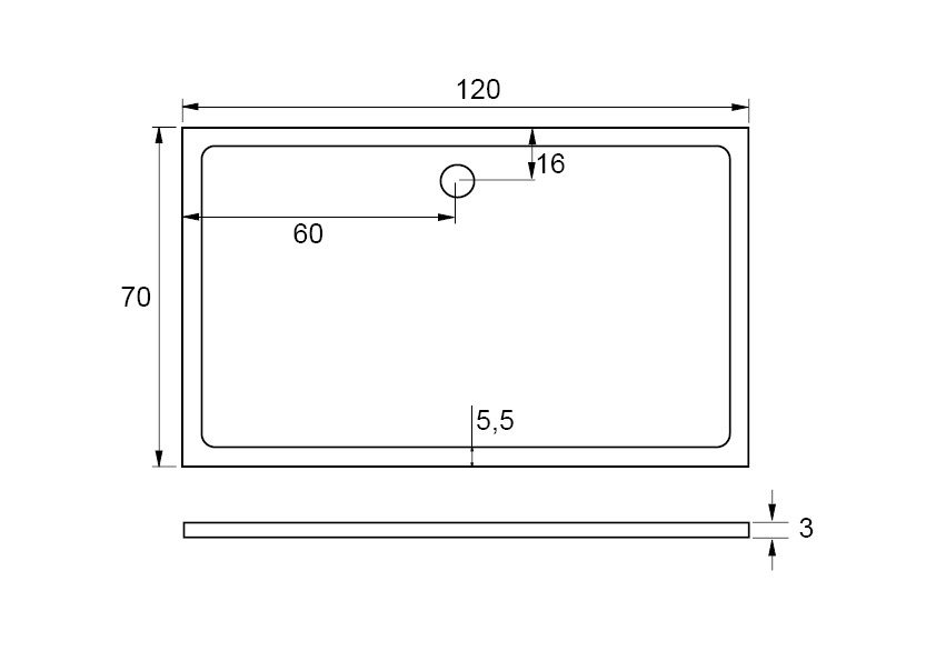 Rozměry: Celková velikost koutu (včetně vaničky) 120 x 70 cm