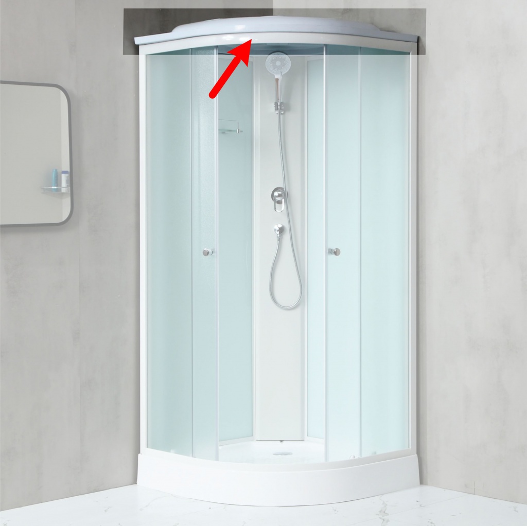 Čtvrtkruhový strop vhodný pro zakrytí sprchového boxu Notre nebo Mild s nízkou vaničkou, o rozměru 90x90.
