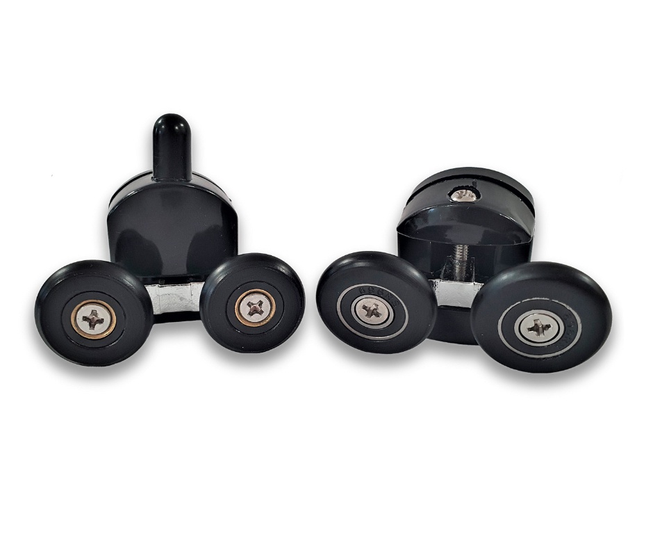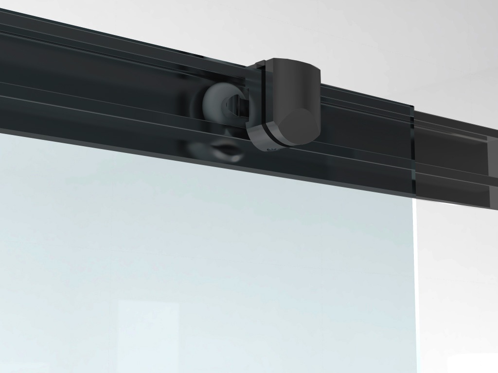 Posuvné křídlo je zavěšeno na pevném ložiskovém dvoukolečku. Dvoukolečkový pojezd bude jezdit i v dolní liště, tentokrát vybavený vycvakávacím systémem, pro snadnou údržbu spodního pojezdového profilu.