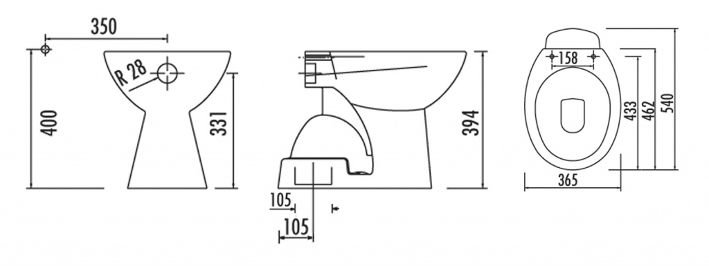 WC mísa stojící, 36x54cm, spodní odpad, bílá Creavit