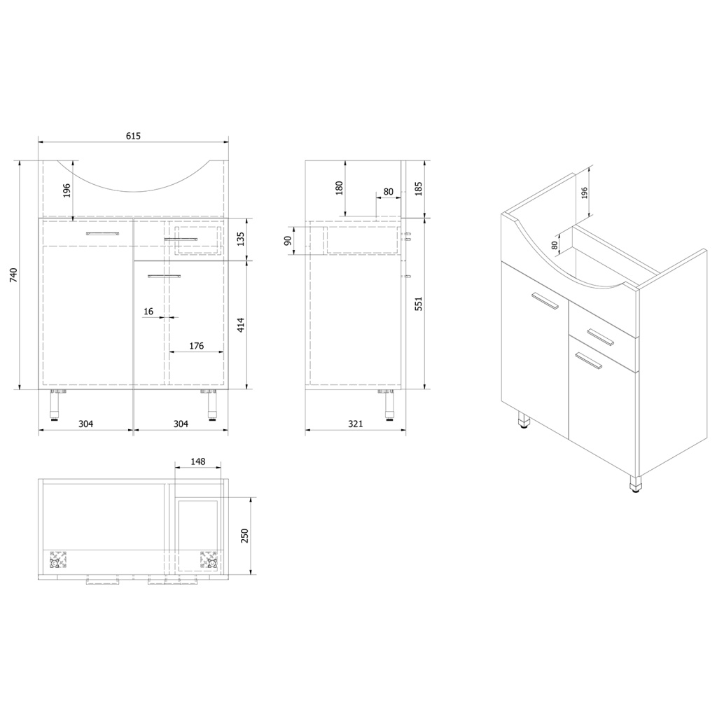 ZOJA umyvadlová skříňka 61,5x74x32cm, 2x dvířka, 1x zásuvka, dub platin Aqualine